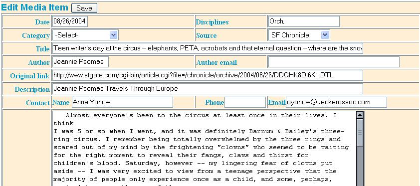 In this module you are able to catalog documents and articles located on your web site or anywhere else on the web, including