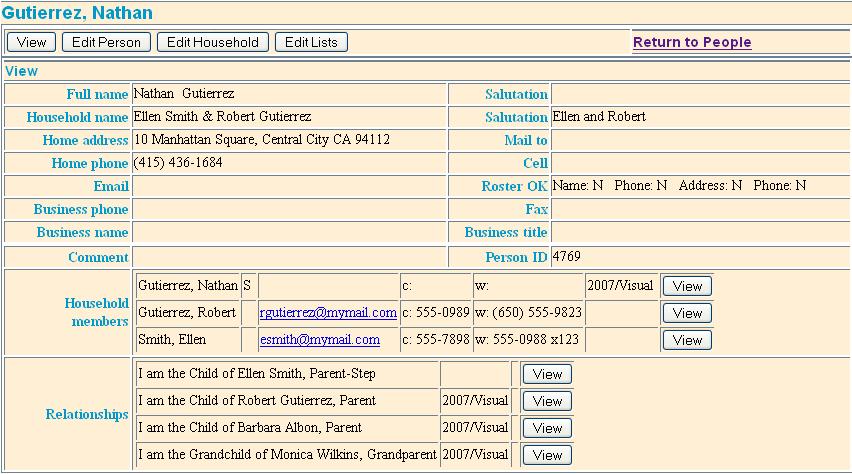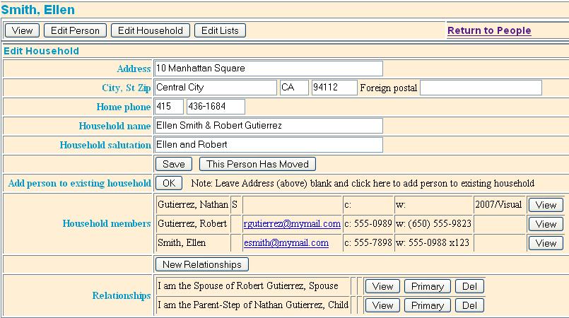 of the Household view. You can see that Ellen is the parent of Nathan and the spouse of Robert