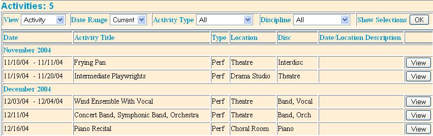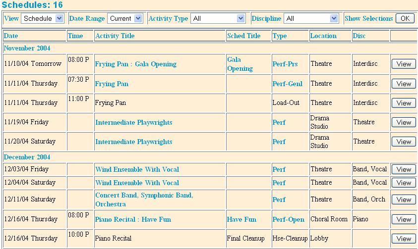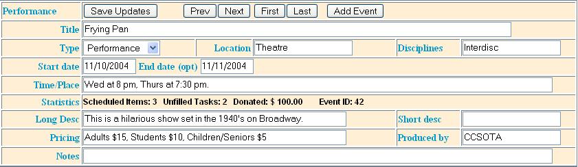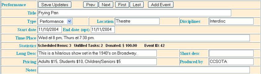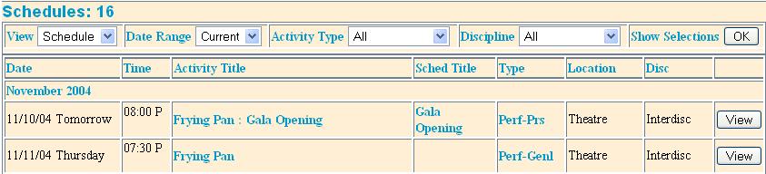 many schedule entries. A performance could happen over several nights, and an event might have a morning and afternoon session.
