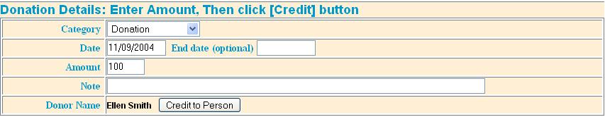 As donations or pledges are received, in the donation module enter all of part of the donor's name,