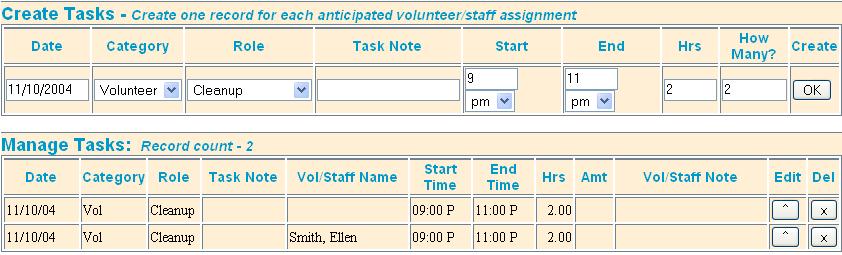to rough out your schedule before you have the staff or volunteers. As you identify the people, just select the task and