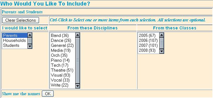 duplicates will be automatically eliminated. For schools, you can refine the selection by choosing one or more classes and